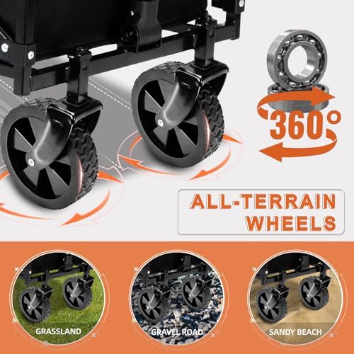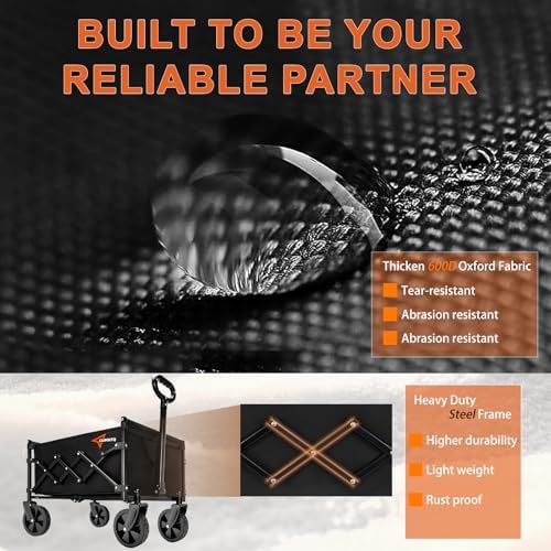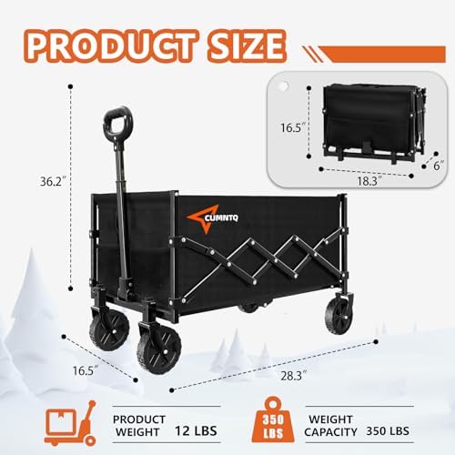 Collapsible Wagon with All-Terrain Wheels: CUMNTQ Foldable wagon with two detachable 360-degree rotating front wheel design, swing like your dancing partner. The cart with wheels climbs over hard sand, rocks, grass and mudo easily and maneuvers well, making it a practical tool for your outdoor tasks