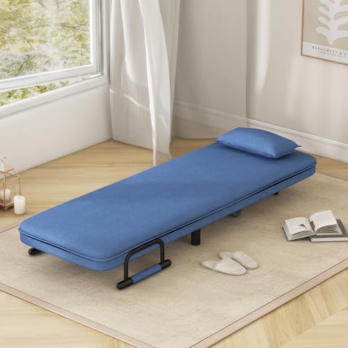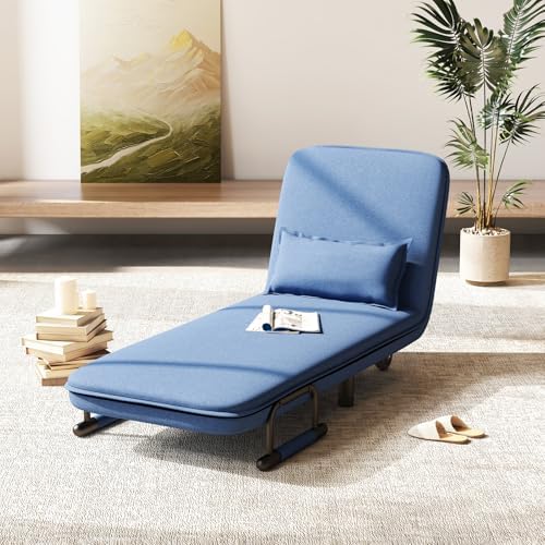 [Ultimate Comfort & Extra Pillow]: This chair features a 9” padded upholstered seat cushion filled with 4” high resilience foam for a comfortable reclining experience. The comfy folding sleeper chair’s surface is covered with anti-pilling polyester fabric, which is breathable and skin-friendly. This single couch chair comes with a removable soft pillow for excellent reclining or lumbar support.