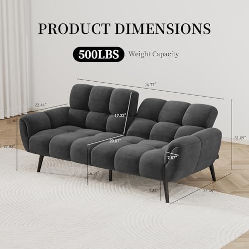 Built to Last – Constructed with a sturdy frame and solid wood legs, our futon sofa bed is designed for durability. With dimensions of 33.46″D x 76.77″W x 31.89″H, it supports up to 500 lbs for reliable use.