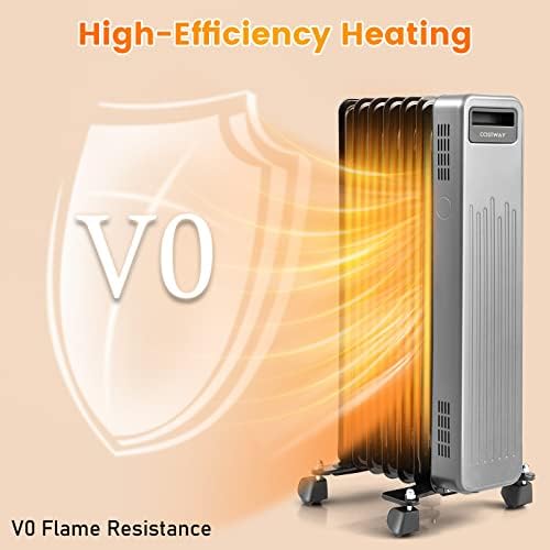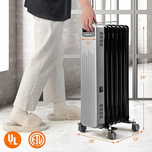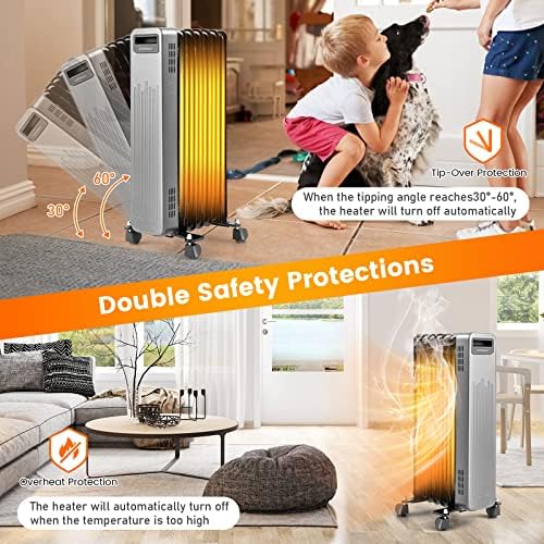 Fast & Efficient Heating: Featuring high-efficiency heating with V0 flame resistance, this oil filled radiant heater will instantly make your surroundings full of warmness. There are 3 heating levels for you to choose: 600W, 900W and 1500W. With this functional oil filled heater, you won’t feel cold anymore in chilly winter days.