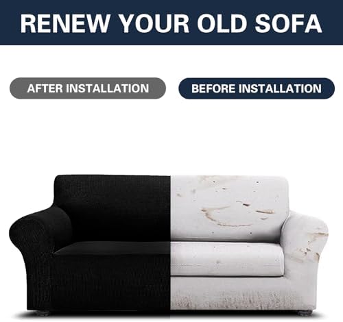 Cupuamon 2026 New Stretch Sofa Slipcovers Couch Cover for 3 Cushion Furniture Protector Sofa Covers with Elastic Bottom Jacquard Fabric Small Checks for Pets, Kids -Sofa, Black