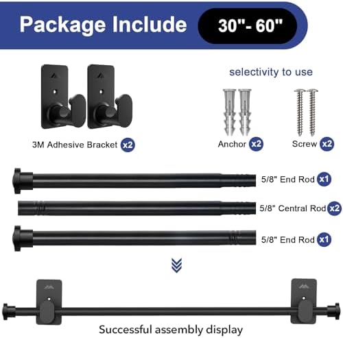 【Easy to Install】Two-step installation, one simply peel off the 3M adhesive backing and stick the brackets onto the wall, two connect curtain rods together and then press the curtain rod into the lock.No drilling, no damage to the wall, you can rest assured to use in the rental house or anywhere.Using a hair dryer to heat the glue layer,it can be easily removed.