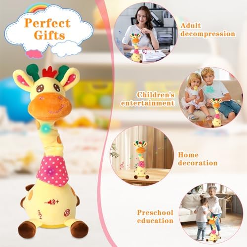 【Dancing Talking Giraffe】Our giraffe baby toy boasts an irresistible giraffe appearance that will draw the attention of children. It has the same features as the dancing cactus, singing 60 songs, twisting and dancing, and LED lights