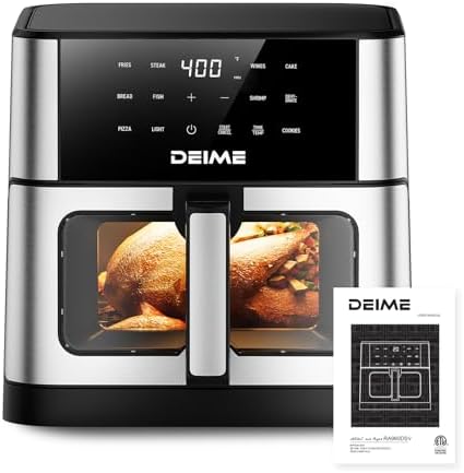 Multifunctional Air Fryer: With a 10.2 QT capacity and 1700W power, this air fryer is equipped with a high-definition touch screen, built-in cooking light, and heat insulation viewing windows are designed to be the perfect assistant for your cooking and decoration of your kitchen counter. It can replace a variety of kitchen appliances such as a toaster, rotisserie, fruit dryer, oven, etc., perfect for families who pursue a healthy diet.