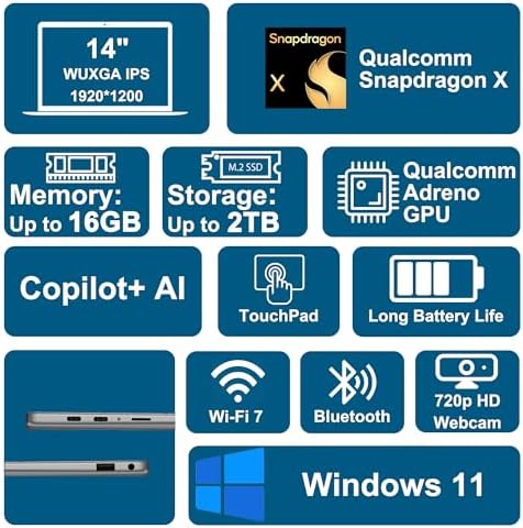 Qualcomm 8-core Snapdragon X X1-26-100 Processor (Max Boost Clock Up to 3GHz, 30MB Cache)