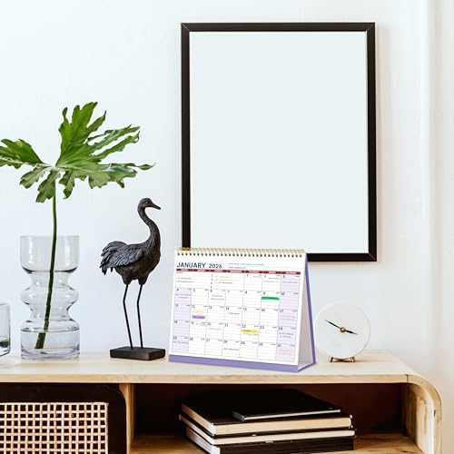 UNIQUE FEATURES: The 2026 desk calendar featuring Twin-wire binding ensures smooth page-turning and lays completely flat for effortless writing. Premium thick paper prevents ink bleeding and ghosting. Reinforced A-frame stand provides sturdy desktop display with foldable portability. Plus, 2026-2027 yearly overview pages is included at the back.