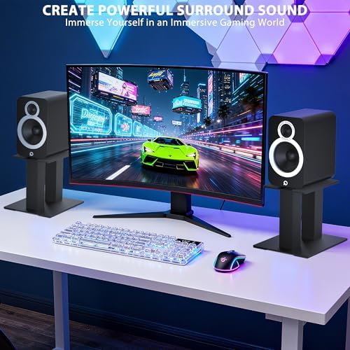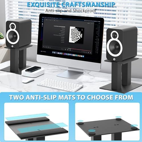 【Built for stability】Each bookshelf speaker stand uses four rubber feet to reduce vibration for better audio quality and prevent the stand from moving or shifting when placed on your desk.