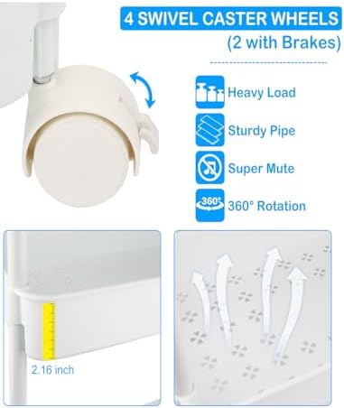 Large Capacity: This storage cart is made of ABS material mesh frame and sturdy pipe and doesn’t take up much space, size 14.18 x 9.26 x 31.13 inches. With this 3-tier diaper cart, it can hold plenty of diapers, wipes, clothes, toys, and more. No more running back and forth to the nursery or changing tables