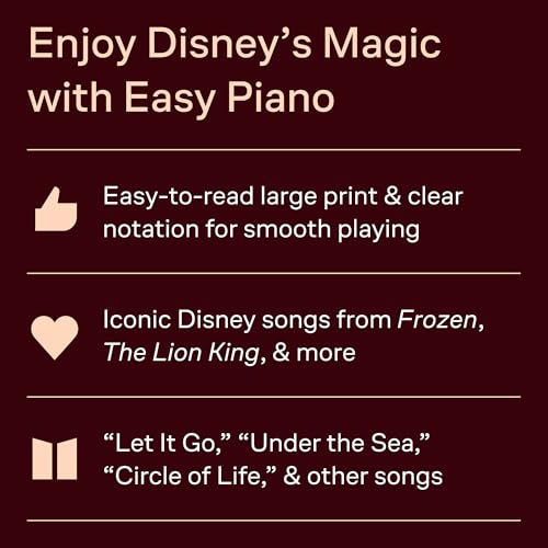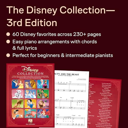 This updated 3rd edition features easy piano arrangements with lyrics and chord symbols, making it ideal for solo practice or group performance. Each piece is carefully adapted to balance accessibility and authentic Disney sound, allowing pianists to perform confidently while developing reading, rhythm, and expression skills. From classic films to modern favorites, it includes generations of songs that capture Disney’s imagination and heart.