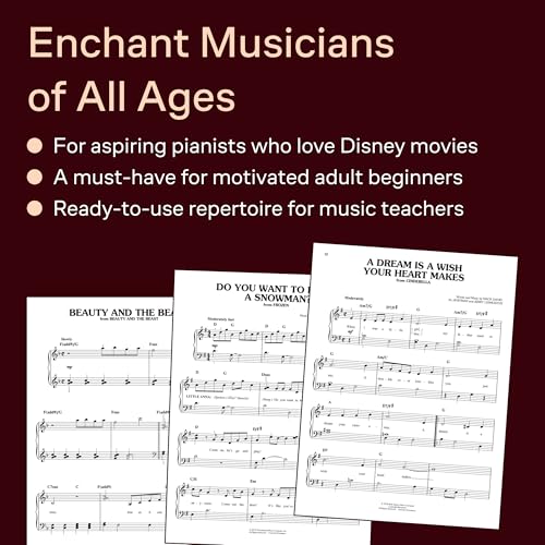 Perfect for home learning or classroom use, this book supports developing musicians with clear notation, familiar melodies, and inspiring arrangements. It’s also a trusted music teacher resource and a delightful gift for Disney fans of all ages. With its wide variety of styles and easy readability, this collection motivates consistent practice through music everyone loves to play and sing.