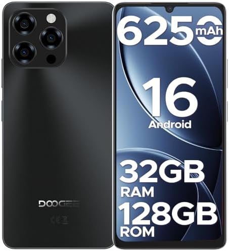 DOOGEE Note 58 Android 16 Unlocked Phones, 32GB+128GB/2TB Expand Cell Phone, 6.6”HD+90Hz Dispaly, 6250mah Battery, 4G Dual Sim Unlocked Smartphone, Widevine L1/NFC/OTG/Face Unlock