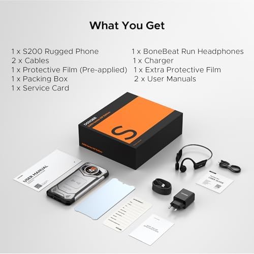 【𝐀𝐧𝐝𝐫𝐨𝐢𝐝 𝟏𝟔 𝐃𝐨𝐨𝐠𝐞𝐞 𝐒𝟐𝟎𝟎 𝐑𝐮𝐠𝐠𝐞𝐝 𝐏𝐡𝐨𝐧𝐞 + 𝐁𝐨𝐧𝐞𝐁𝐞𝐚𝐭 𝐑𝐮𝐧 𝐄𝐚𝐫𝐩𝐡𝐨𝐧𝐞𝐬】Pair Doogee S200 rugged smartphone 5g with BoneBeat Run bone-conduction headphones for an all-round sports and entertainment powerhouse. Doogee S200 rugged cell phone is equipped with the latest Android 16 system, with a deeply optimized underlying system architecture, giving you a smoother user experience. BoneBeat Run bone-conduction headphones stay put through high-intensity runs, rides and gym sessions, making them perfect sports companions. The headphones effectively filter out ambient noise, ensuring clear calls and pure music even in noisy subways and streets.