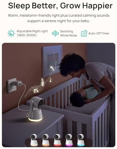 Nighttime Peace with Intelligent Baby Care: Give your baby the sweetest dreams with LumiView Plus. The gentle 6-color nightlight, featuring a red glow that supports natural melatonin release, helps your little one drift off in comfort. Soft white noise fills the room with calm, while HD night vision lets you see every tiny smile, even in the dark. Day or night, stay closely connected through smart alerts for sound, motion, and temperature changes—so you’ll always know your baby is safe, comfortable, and deeply loved.