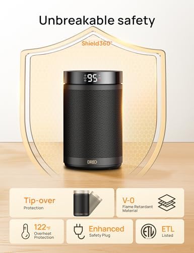 Unbreakable safety: DREO goes beyond the unexpected to deliver peace of mind with every room heater. The innovative tilt-detection sensor improves accuracy and reliability for better tip-over protection, and built with V0 flame retardant materials, overheat protection, and safety plug, all certified by ETL.