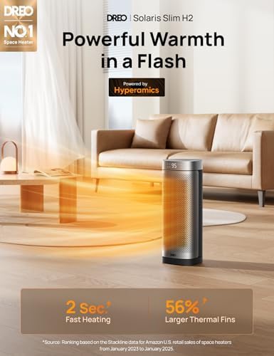 𝗘𝘃𝗲𝗻 𝗖𝗼𝗺𝗳𝗼𝗿𝘁, 𝗥𝗼𝗼𝗺-𝗙𝗶𝗹𝗹𝗶𝗻𝗴 𝗪𝗮𝗿𝗺𝘁𝗵: Powered by a 70° wide-angle heating capability, DREO Space Heaters distribute heat thoroughly. Perfect for large areas including bedrooms, living rooms, and offices.