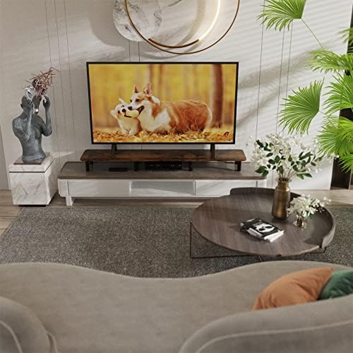 【Extra-Long Design for Dual Monitors & More】 This 43.7-inch wide monitor stand riser is designed to comfortably hold two monitors, laptops, or even a TV, providing ample space for your home office or workspace. Its extra-long design ensures your desk stays organized and clutter-free.