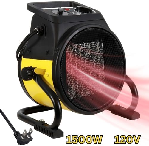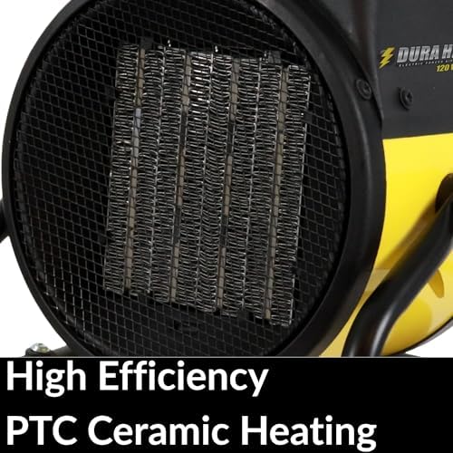 Dura Heat Forced Air Electric Garage Heater, 1500W PTC Ceramic, Rugged Steel Body, Thermostat, High Velocity Fan, 6 ft Power Cord, Heats Up To 250 Sq Ft, Safety Shut-Off – Garage and Greenhouse Heater This Dura Heat Electric Forced Air Heater is designed to deliver efficient and powerful warmth to your small spaces, making it an ideal choice for garages, workshops, greenhouses, or other work areas. With 1500 watts of PTC ceramic heating, this compact yet effective electric heater quickly heats areas up to 250 square feet. The unit features a rugged, steel construction built to withstand the demands of commercial use and heavy-duty environments, while its lightweight design and convenient carrying handle make it easy to transport and position wherever you need extra warmth. Equipped with an adjustable thermostat, this heater allows you to set the ideal temperature, ensuring consistent comfort in your workspace. Its high-velocity fan distributes hot air evenly, effectively circulating warmth throughout the room and making it an excellent hot air circulator. You’ll appreciate the dual functionality of this heater, as it includes both a heat setting and a fan-only mode, which lets you use the fan for air circulation during warmer months. Safety is a top priority with this Dura Heat model. It comes with an overheat shut-off feature that automatically turns the unit off if it reaches unsafe temperatures, offering peace of mind during extended use. The 6-foot power cord with a polarized plug provides ample reach for convenient placement, while the stable base stand ensures secure positioning on various surfaces. Customers love this portable ceramic heater for its reliable performance and heat output. Many have found it ideal as a small electric heater for indoor and workspace use, with its powerful fan and efficient heating elements making it especially effective in smaller rooms. Its compact design also allows it to fit comfortably in areas with limited space, adding warmth without getting in the way. Whether you need a garage heater, or a portable electric heater for your workspace, this model combines efficiency, safety, and portability in a compact package.