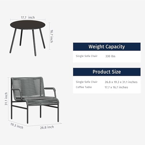 •    3-piece Patio Set: 2 single chairs, 1 coffee table and all assembly tools conveniently packed in one box