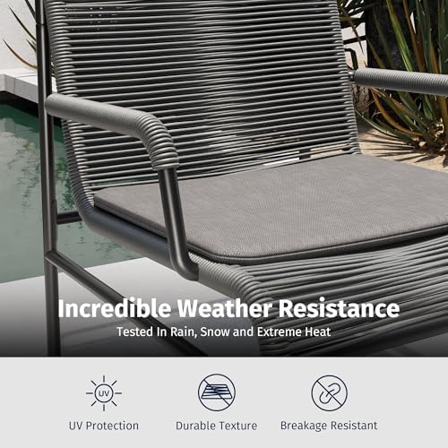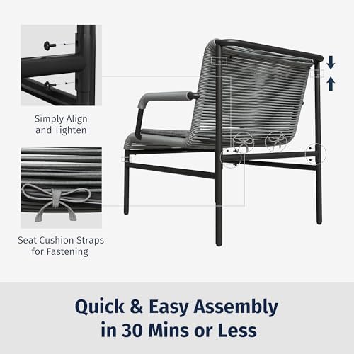 User-Friendly Assembly: Effortlessly assemble the outdoor furniture set within 20 minutes or less with two steps, and the adjustable feet for added convenience. This portable ensemble allows you to arrange and enjoy your furniture according to your preferences for long-lasting memories