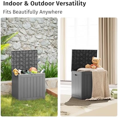 𝗘𝗫𝗧𝗥𝗔 𝗦𝗘𝗔𝗧 𝗢𝗥 𝗧𝗔𝗕𝗟𝗘: In addition to its use as a storage box, the small storage box also has a 170lbs load capacity, can be used as a single patio seat or table. It can be used both indoors and outdoors