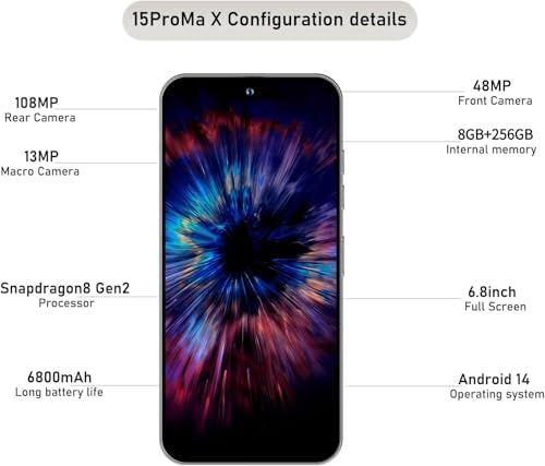 [6.8 HD & 8+256GB] This large-screen Unlocked Smartphone is equipped with a generous 8GB of RAM and 256GB of internal storage, providing ample space for photos, and files while ensuring smooth multitasking and a fast, responsive experience.