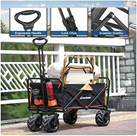 Fast Set-Up & Fold: No assembly required for EchoSmile big collapsible wagon heavy duty. A convenient size for both storage and expanded use. Fast and easy to set up in seconds and has an attached handle to move the beach cart. This folding heavy-duty wagon can be folded compactly to store easily in a compact car, or garage, ensuring easy transport.