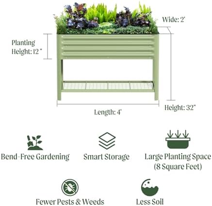 🌱Healthier Roots and No Bending Down: With a total height of 32″, you will bend over less, which eases the strain of bending down and saves your back. Combined with a planting height of 12″, our elevated garden beds provide enough room for your plants to grow.