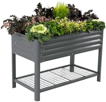 Elevated Raised Garden Bed-V Series, 2′ x 4′ Garden Beds with Legs & Storage Rack for Patio Porch, 700 Lbs Weight Capacity, Outdoor Planter Boxes for Gardening Herbs Vegetables Flowers, Modern Gray