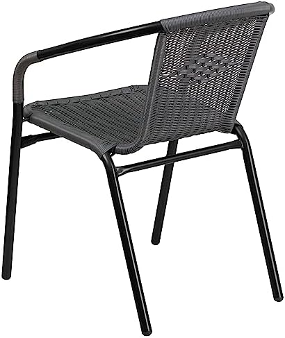 EMMA + OLIVER Set of 2 Modern Rattan Indoor/Outdoor Stack Chairs, Stacking Rattan Patio Chairs with Curved Back and Cross Bracing, Gray