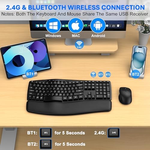 【Widely Compatible & 12 Months Warranty】The Ergonomic wireless keyboard and mouse combo boasts extensive compatibility with Windows 7 and above systems, Mac OS, and various other operating systems. It can easily connect to desktop computers, PC, tablets, and other electronic devices and more. Moreover, all our products come with a 12-month warranty. Even beyond the Amazon return period, we’re committed to offering a satisfactory solution should you reach out to us via our after-sales email.