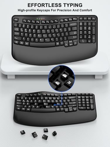【WAVE-SHAPED KEYS DESIGN】: This wireless ergonomic keyboard with innovative and unique wave design perfectly fits the natural curve of the human hand, so that the fingers can stretch naturally during the typing process, reducing hand fatigue and discomfort