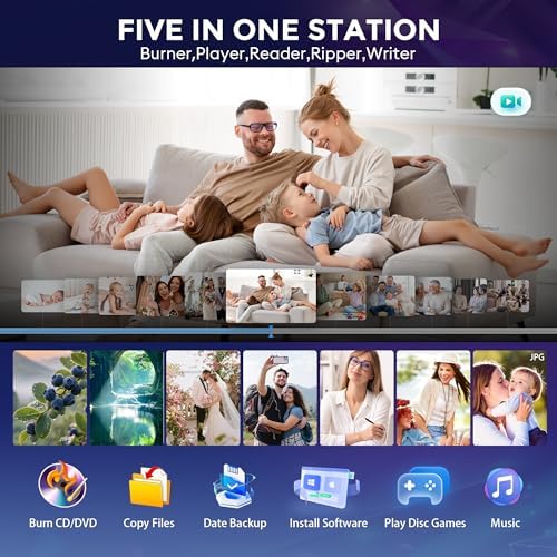 Portable CD/DVD Burner & Player – This external cd/dvd drive can be a CD/DVD burner, writer, player, reader, or ripper. Use this disk drive to play or burn music or movies, back up, store or transfer all files or material you wanted, like copying photos, reading X-ray on disk, or ripping some DVDs to your Apple MacBook Air. Also use this cd reader for laptop to download and install games or any other programs