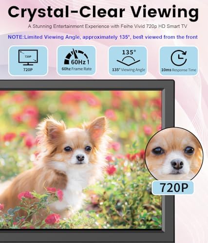📺【Perfectly Sized Small Smart TV for Any Space】:Designed to fit where other TVs can’t, Feihe 14 inch small smart TV is the ideal solution for kitchens, RVs, campers, and bedrooms. Its compact 14 inch screen delivers crisp 720P Full HD resolution, bringing clear, vivid visuals to your compact space. Whether you’re meal prepping or winding down at night, this small flat screen smart TV enhances your experience with a sleek design that fits in any nook. Finally, a smart tv small enough for every corner — and smart enough for every need.(★Check Your Space Size For Fitment Before Purchasing: L 13.46 inch×H 12.5 inch;without stand size: L 13.46 inch×H 9.52inch)
