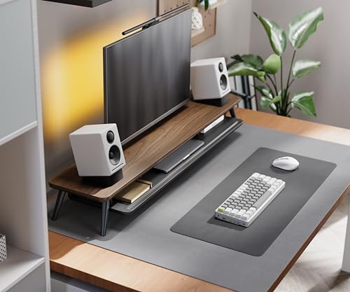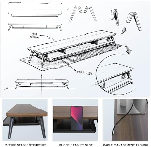 【2 TIER DESKTOP ORGANIZER】At longest 42.5inch wide,longer size with more space. This laptop riser is big enough to support two monitors. It has 1 universal device holder slot and 3 high capacity compartments. You can easily store your office accessories & supplies under your monitor stand to keep your desktop tidy. Our monitor stand rise comes with cable management slots that can make your cord stay organized.