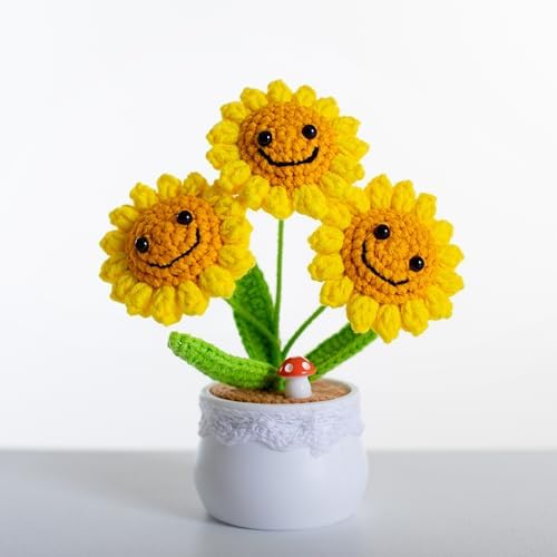 100% Handmade: Each mini sunflower potted plant is carefully hand-crocheted by skilled artisans, showcasing exquisite craftsmanship and unique artistry.