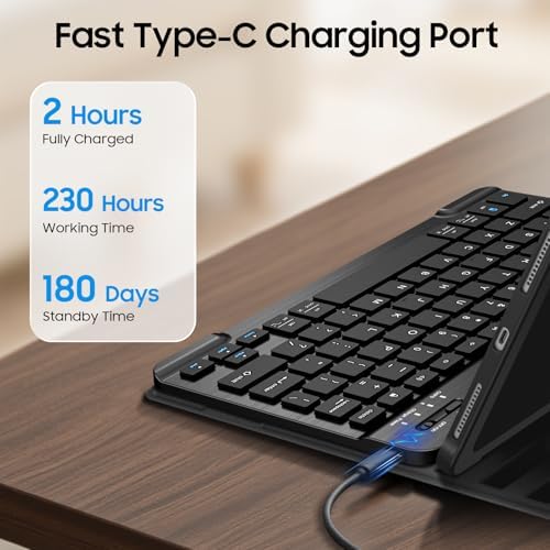 Long-Lasting & Rechargeable Battery: A single charge delivers up to 230 hours of continuous typing—enough for weeks of regular use. The built-in 420mAh battery supports ultra-efficient power management and charges fully in just 2-3 hours via USB-C (cable included).No more battery replacements! For added convenience, it automatically switches to energy-saving mode after 10 minutes of inactivity, extending standby time for worry-free usage.