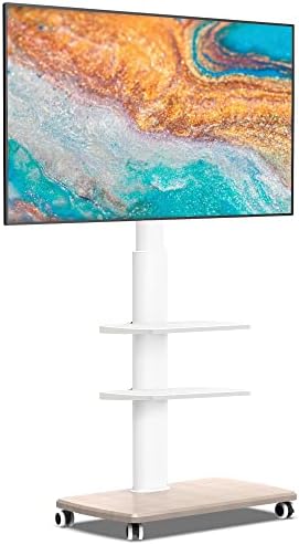 VERSATILE TV STAND WITH 2-TIER STORAGE: This floor TV stand with 4 wheels is perfect for your bedroom, living room, home office, and kitchen, even small space like room corners, space saving and convenient for house cleaning and rearrangement. Updated lockable wheels provides trouble-free, silent and smooth operation for movement. The 2-tier removable plastic shelf provide extra storage for your laptop DVD player etc, each tier bears up to 11lbs