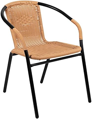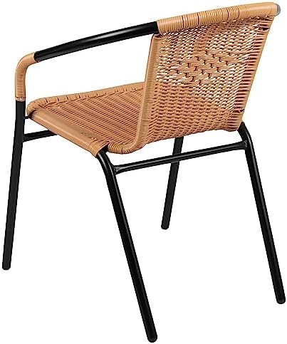 Enhance your space with this set of 4 versatile and elegant indoor-outdoor restaurant stack chairs. Whether you’re furnishing a restaurant, bistro, patio, sunroom, or dining room, these stackable chairs make a statement while providing comfort to your guests. The woven sculpted look creates a unique blend of sophistication and casual appeal that seamlessly complements various decors. These rattan chairs are designed for both indoor and outdoor use, allowing you to create a cohesive seating arrangement throughout your establishment. With a powder-coated steel frame, these chairs offer durability and a static weight capacity of up to 352 pounds. They arrive fully assembled, making them convenient for immediate use. With a recommended stack height of up to 23 chairs high, these chairs allow for easy storage and cleaning, as well as efficient utilization of space making them ideal for commercial environments. These chairs feature floor glides to protect your hard flooring surfaces when used indoors.