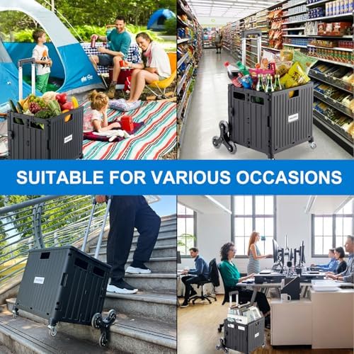 【Box Appearance, Aesthetic and Practical】: This durable multifunctional hand truck box has a maximum load capacity of 110 pounds. The extendable handle and detachable cover allow you to transport various items such as books, documents, office supplies, groceries, laundry, or personal belongings. It’s suitable for various occasions like travel, shopping, or moving.