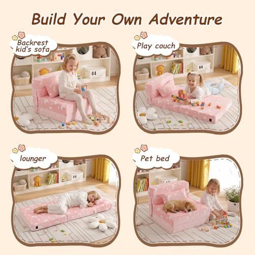 【Kid’s Folding Chair Bed Requires No Assembly】The kids folding mattress is in vacuum packing. Open the Kids Couch packaging and you will get a soft plush Sofa for your kids. Please allow 4-5 days for the kids sofa couch to take on its original shape or use a clothing steamer to restore its thickness and remove creases quickly.(Cold weather may take longer)