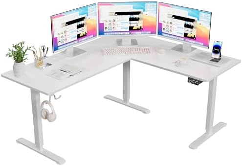 Multi-functional Design: The L shaped corner desks come with a double-sided hook for your headphones or bag, and the three leg and six feet support design provides better stability and ensures that your work is not interrupted when lifting or lowering the desk.