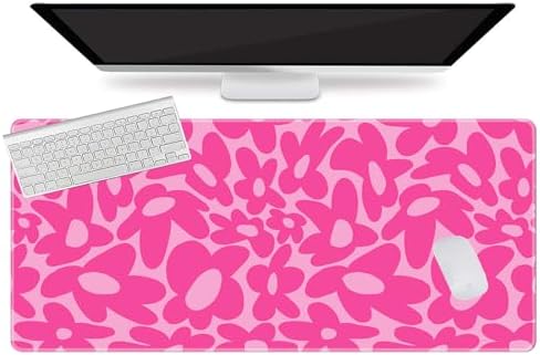 【Hot Pink Daisy Mouse Pad】-Pink desk mat is big enough to accommodate your computer, laptop, keyboard and other desk items,and still leave plenty of space for your mouse to move all around.Decorate your study,computer desk, bedroom or office,modern office and home accessory