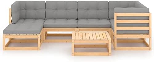 This 7-piece garden lounge set combines style and function. It’s got a strong, solid pine wood design that gives a rustic elegance to any balcony or garden spot. Perfect for social events, it offers plenty of comfy seating with soft, weather-resistant cushions made for outdoor comfort while keeping a modern look.