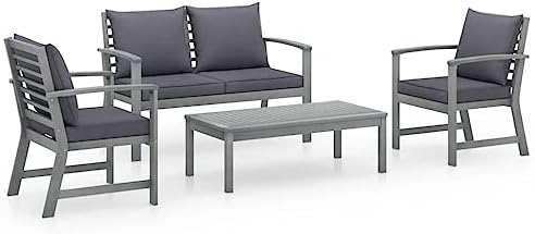 This 4-piece garden lounge set perfectly blends style and function. With a bench, two armchairs, and a table, it’s just right for outdoor spots like gardens, patios, or terraces. Its smooth, weathered finish and sturdy acacia wood provide comfy seating for up to three, while also adding rustic charm to any outdoor look, perfect for coffee catch-ups or lazy afternoons.