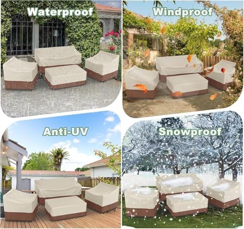 【Durable 600D Fabric for All-season Patio Covers】Gasadar patio furniture covers are crafted from heavy – duty Oxford fabric renowned for its toughness and tear – resistance. Equipped with UV – resistant properties, these covers safeguard your outdoor conversation set throughout the year, shielding it from rain, snow, dirt, harsh sunlight, and debris.Once you’re done using your outdoor furniture, there’s no need to constantly move it indoors for protection. Simply drape these covers over your furniture, and you’re all set.