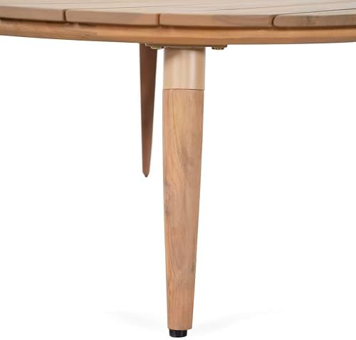Timeless Circular Design:The 31.5-inch round tabletop promotes cozy conversation and sharing. Its slatted surface adds an artisanal touch and allows water drainage, while the warm natural finish complements a variety of outdoor styles including rustic, coastal, and boho.