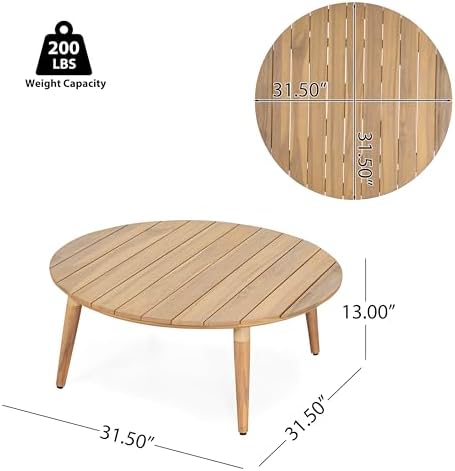 Natural Beauty for Outdoor Living Enhance your patio or garden with the rustic charm and lasting elegance of the GDFStudio Verona Round Coffee Table. Expertly crafted from solid acacia wood with a warm, natural finish, this outdoor table offers both style and durability for year-round outdoor enjoyment.Its classic circular shape promotes easy interaction, while the tapered legs provide stability on both flat and uneven surfaces like grass or gravel.Whether you’re curating a boho retreat, coastal oasis, or farmhouse-style porch, this table blends seamlessly with any décor. The slatted wood surface not only enhances visual appeal but also allows rainwater to drain easily. Key Features