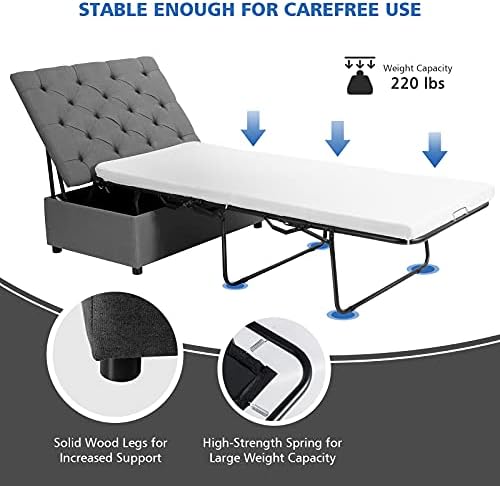 Stable & Solid Construction: This folding bed is supported by a strong steel frame, ensuring a firm structure to withstand large weight capacity for you to sleep or sit. High-strength springs under mattress can absorb shock and ensure strong supporting force and high durability. Also, anti-skid foot pads are attached at the bottom to enhance safety as well as protect the floor.