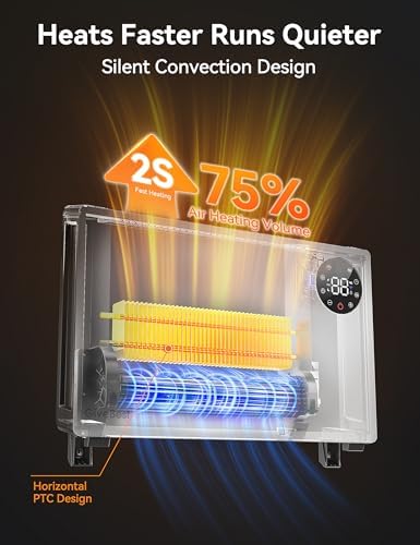 Upgraded Safety and Healthy: The “Stacked Convection” design, enjoy cleaner air – it doesn’t blow dust or allergens, making it ideal for allergy sufferers and those with respiratory sensitivities. Our quiet wall heater for indoor use is equipped with comprehensive safety features, including child lock, V-0 flame-retardant material, overheat protection, tip-over switch, and high-temperature detection. Ideal for homes with children, elderly people, or pets