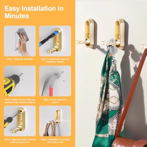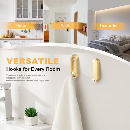【Versatile for Multiple Rooms】Perfect for organizing coats, towels, hats, keys, purses, and backpacks in bathroom, bedroom, kitchen, entryway, closet, RV, or laundry room. Sleek gold finish complements any modern home decor.